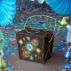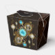Turquoise lenses with antique watch with brass gears and golden keys on rusty, brown background. Steampunk style.