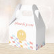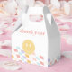 Célébrez vos petites filles grand jour en style avec notre rétro coloré à damiers joyeux visage boîte de faveur, avec des dames pastel ondulé et un visage heureux totalement stellaire.