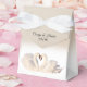 Des cygnes d'amour élégants sont présentés dans ce magnifique design personnalisé aux accents blanc et crème. Les cygnes sont gracieux et ils s'accouplent à vie, ce qui en fait des symboles romantiques parfaits pour votre mariage.