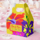 Ballotins d'anniversaire et d'événements tropicaux avec le texte "merci d'être ici". Grand et audacieux, design floral en rouge, violet et rose, sur une couleur arrière - plan jaune doré. Customisez le texte en deux lignes à l'avant des cases avec poignées. Cette conception sera transférée à certaines des autres formes de boîte. Les choses s'impriment comme vous le voyez, alors ne choisissez pas une zone qui coupe votre texte. Parfait pour les fêtes d'anniversaire d'été et les douches à thème tropicales et les fêtes d'avant-mariage.