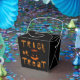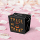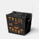 Image d'Halloween 'Trick or Treat' avec citrouille sculpté brillant sur les boîtes de fête.