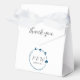 Merci à vos invités de l'événement mariage avec un ballotin avec un ruban blanc qui présente une couleur turquoise bleue, une couronne de coeur simple qui présente les initiales de la mariée et du marié et la date du mariage en écriture grise et stylisée. Modifiez votre ballotin pour remplacer les initiales et la date par la vôtre.