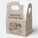 Ces ballotins mignons sont parfaits pour votre baccalauréat. Elles sont décorées dans un style occidental rustique avec un arrière - plan en bois de barnwood patiné et des oeuvres d'art vintages avec des mots en bois "He's Tying the Knot !" Il y a une botte de cowboy, un casquette de cowboy, et une corde de lasso formant une forme cardiaque. Le titre se lit, "Trousse de récupération de pique-nique" et il y a de la place pour son nom et la date de l'événement ci-dessous. Un cadeau parfait pour vos groomsmen !