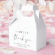 Une boîte chic pour mariage avec "Un Merci sucré" dans un mélange d'un script moderne et d'une typographie élégante, vos noms et la date mariage.