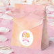 Couleurs rose, orange et jaune sherbert "Un petit rayon de soleil est sur son chemin" Baby shower fille design. Dispose d'un arc en ciel aquarelle et d'un petit soleil qui ressemble à un tournesol. Conception composite par Hoilday Hearts Designs.