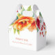 Verona coucher de soleil orangé fleurs mariage Merci ballotin. Ce ballotin magnifiquement conçu présente un agencement captivant de fleurs délicates dans les tons oranges chauds, qui rappelle un coucher de soleil de Vérone. Parfaites pour organiser des petites gâteries, des bonbons ou un souvenir personnalisé, ces boîtes ajoutent une touche d'élégance et de chaleur à votre réception de mariage. La boîte affiche également élégamment l'expression "Merci", ainsi que les noms du couple et la date du mariage, ce qui en fait un souvenir unique et mémorable.