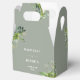 Cette élégante boîte de faveur de mariage botanique fleurie verdoyante peut être personnalisée avec vos informations en typographie chic sur un arrière - plan vert sage. Conçu par Thisisnotme©
