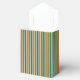 Ballotin rayé vert olive, turquoise et orange avec cravate ruban. Parfait pour tous les thèmes de décoration cadeau; simple/minimaliste à maximaliste en fonction des agréments supplémentaires.