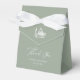 Cette boîte de faveur de mariage vert sauge simple et élégant présente un style classique et ancien avec une calligraphie blanche romantique. On y trouve également une illustration vintage d'un bâtiment de la Renaissance italienne. Donnez le ton à votre mariage de luxe et raffiné d'inspiration italienne avec ce design élégant et minimaliste.