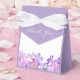 Élégante et simple boîte de faveur de fête de mariage avec fleur de géranium rose violet et texte de calligraphie vibrant.
