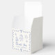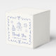 De mignons ballotins de douches pour bébé crème pâle avec un cadre bleu ondulé branché orné d'arcs, des illustrations fantaisistes dessinées à la main de coeurs, d'étoiles, un décor de gâteau et de pépinière, et un "Merci" présenté dans un script bleu amusant et ludique.