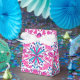 Ballotin de tente dans un vintage William Morris motif de jacinthes, tulipes et feuilles, dans les tons fuchsia et rose doux, accentué de bleu foncé et turquoise, sur un arrière - plan blanc