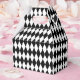 Boîte de faveur de la fête affichée dans un design motif diamant noir et blanc. Customisez cet objet ou achetez tel quel.