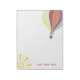 Un bloc-notes avec l'illustration rétro d'une montgolfière en haut à droite et du soleil en bas à gauche. Personnalisez avec votre nom en bas.