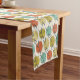 Illustrated balls of wool in polka dot pattern on colourful, quirky table runner. .