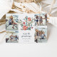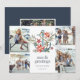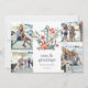 Le carte photo de vacances à thème côtier mignon présente quatre photos dans une mise en page collage, avec une illustration d'ancrage aquarelle décorée de fleurs de poinsettia, d'étoiles de mer rouge et de la verdure de Noël colorée. "Mers et salutations" apparaît en dessous, avec vos noms et l'année. Ajoutez une photo et un texte supplémentaires à l'envers sur un arrière - plan bleu du port.