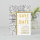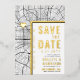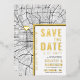 A unique save-the-date invitation card featuring a map of the city of Baltimore, Maryland. It features several unique features that make an impression on your future guest, including the names of the bride and groom, the city name, and the words "Save the Date" in gold foil. A gold foil heart symbol pinpoints your location of love in the city. The city map is on the front and reverse sides and can be scaled and moved around. All elements of this invite are unlocked, so have fun being creative and making it fit your style.