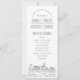 A deco skyline-themed wedding program for a wedding taking place in the beautiful city of Baltimore, Maryland. This wedding program card features a stylized illustration of the city's unique skyline with its name underneath. This is resting underneath your wedding day information in a matching open-lined style.