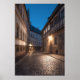 Night photograph of the historic cobblestone road "Domplatz" in Bamberg, Germany. Photo © Sebastian Worm
