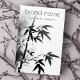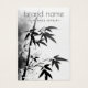 Earring product display card with your brand in a modern script font and a black and white ink drawing of bamboo. Customizable text on the back.