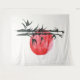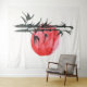 The wall hanging shows the silhouette of a delicate bamboo in front of a deep red sun on the horizon. Bamboo represents the grace and perseverance valued in Zen Buddhism. The red sun symbolizes energy and power, which are important for enlightenment and spiritual development in Zen Buddhism.