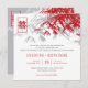 Oriental zen red and light ash grey bamboo leaves with the double happiness symbol. An elegant and stylish asian themed wedding design which is modern, simple and classy.