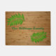 Stylish tan and green door mat done in a bamboo wood looking background. Pretty green fern leaves, decorate the top left and bottom right sides of the mat. Personalize the green text to read what you want.