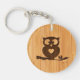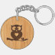 Bamboo Look & Engraved Cute Owl in Tree Keychain