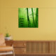 Text which says - silence calms my soul. With a lush emerald green image of bamboo stalks with long delicate leaves and pale bokeh lights in the background.
