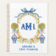 Ce design chic présente un bambou avec un arc bleu entouré d'orangers dans des pots de chinoiserie. Il y a un cadre en bambou autour du bord extérieur. Vous pouvez personnaliser avec votre monogramme, nom et année.