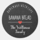 Modern "homemade with love" sticker featuring "banana bread" with a white font on a chalkboard background embellished by a cute red heart. Customize text.