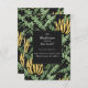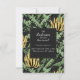Ces cartes de Faire-part de déménagement d'adresses modernes et fantaisistes "The Bunch Has Moved" sont composées de grappes de banane jaune dessinées à la main et de feuilles de banane verte contre un arrière - plan noir aux détails subtils sur la goutte de pluie. Le dos est équipé du même motif.