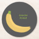 A black coaster with a banana and green customizable text for lovers of this yellow fruit. It could be used when you received friends or family at home or in a bar!