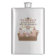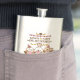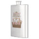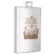 The product is a good size and came exactly as it was pictured. The lid is not attached to the flask, which could be dangerous on drunken nights... The print came out surprisingly well and looks very sharp. Would definitely recommend.