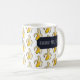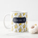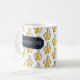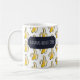 Are you bananas about coffee? A mug featuring the caption "BANANAS ABOUT COFFEE" over a lively pattern of stylized pixel art yellow bananas on a clean white background.