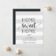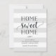 Annonces modernes et charmantes, faites connaître à vos amis et à votre famille votre nouvelle maison douce! Le design présente un arrière - plan rayé subtil en gris pâle et blanc, avec "home sweet home" en écriture noire et en typographie de bloc. Utilisez les champs modèle pour ajouter votre entrée personnalisée, votre nouvelle adresse et vos noms.