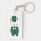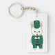 Aimez-vous les porte - clés mignons ? Ce porte - clé présente un lapin blanc jouant de la clarinette en uniforme de fanfare vert et or.