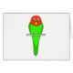 Un oiseau rouge et vert de perruche se reposant sur une perche.