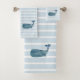 Profitez de notre serviette bleu rayé peint de baleine nautique.
