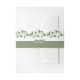 Cet élégant groupe de ventre à faire-part de mariage florales présente un bel agencement de branches ornées de fines fleurs blanches. La partie supérieure est ornée d'une belle guirlande verdoyante et de ces fleurs exquises. Les noms du couple sont affichés en évidence dans une typographie audacieuse, ajoutant une touche de sophistication au design. Compléter le look est une bande verte sage en bas, ajoutant un élément subtil mais élégant à l'esthétique globale.