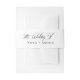Complétez votre papeterie mariage avec le Simple Classy Elegant Modern Classic Traditional Invitation Belly Band. Cet accessoire élégant et élégant ajoute une touche raffinée à vos invitations de mariage, en liant parfaitement les pièces de votre papeterie suite. Conçu dans un jeu de couleurs noir et blanc intemporel, le groupe du ventre présente un élégant script de calligraphie et une typographie traditionnelle classique, incarnant l'équilibre parfait entre sophistication moderne et charme intemporel. Conçu pour s'envelopper harmonieusement autour de votre suite d'invitation, ce groupe de ventre d'inspiration ruban est à la fois fonctionnel et décoratif. La police de caractères minimaliste, manuscrite et soignée, apporte une touche personnelle, créant un détail sobre mais chic qui élève vos invitations. Son design simple et polyvalent en fait un lieu idéal pour s'associer à une variété de thèmes mariages, du classique au formel, en passant par le contemporain et le minimaliste. Dans le cadre d'une jolie suite mariage, ce groupe de ventre apporte cohésion et polissage à vos invitations tout en laissant une impression durable sur vos invités. Que vous planifiez une fête traditionnelle ou une fête moderne, ce design élégant ajoute juste la bonne dose d'élégance. Parfait pour les couples qui aiment la simplicité avec une touche de luxe, ce groupe de ventre d'invitation est un détail de finition sophistiqué pour votre journée spéciale.