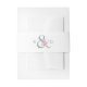 Une impressionnante esperluette ornée d'un croquis floral rose et lavande met en valeur cette invitation design de bande de ventre avec style artistique. Le design est monogrammé avec les initiales de la mariée et du marié que vous pouvez modifier avec vos initiales personnalisées.