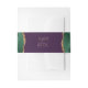 Les bords gauche et droit de cette élégante bande de ventre faire-part de mariage moderne sont dotés d'une bordure en aquarelle vert émeraude et d'une parties scintillant en faux or. Personnalisez-le avec les noms de la mariée et du marié en écriture manuscrite de couleur or sur une grande esperluette sur un arrière - plan violet.