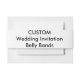 Le ventre fait sur commande d'invitation réunit 2" x 15,5", conçu pour 7" x 5" les invitations orientées par PAYSAGE. 25 bandes de ventre par ordre. Imprimé sur (110 livres.) de carte lourd avec une finition mate. Bande adhésive avec le revêtement démontable pour envelopper facilement votre suite d'invitation ensemble.