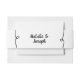 Un très élégant et unique whimsical hardi noir et blanc mariage bande ventre. Cela correspond à l'ambiance de suite fantaisiste mariage. Il a un arrière - plan blanc et écrit à la main les noms des mariés et des mariés. avec style fantaisiste debout au milieu.