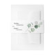 Ce design moderne de bande de ventre blanc verdoyant propose un mélange facile et des styles coordonnés en noir et blanc avec des éléments de verdure délicats ajoutant une floraison gracieuse autour d'une typographie simple sophistiquée et un joli script de calligraphie minimale. L'eucalyptus à l'aquarelle et d'autres feuilles botaniques s'arment magnifiquement tout le long, avec un teint émeraude foncé qui s'estompe dans un effet sombre pour un vert menthe clair - pour ajouter juste assez d'une touche classe de nature rustique à un décor contemporain neutre. Cette magnifique collection créerait un air d'élégance poli pour votre mariage de rêve formel ou décontracté ou autre événement spécial. Comme pour tous nos designs, si vous avez des questions ou des demandes spéciales, contactez-nous.