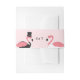 Un groupe de ventre mariage flamand avec une mariée flamingo et un marié flamand sur un arrière - plan rose. Ajoutez simplement vos initiales, ajoutez cette bande de ventre à votre panier et profitez de votre mariage flamand. Flamant rose Monogramme Faire-part de mariage Belly Band Jours fériés Design | ©Melissa Patton - Concepteur/Illustrateur