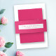 Cette bande de Faire-part de mariage minimaliste présente une couleur rose vif avec une police moderne. Ce morceau est prêt pour vous à customiser avec vos noms et votre date. Faisant partie d'une collection en pleine croissance, veuillez consulter la suite minimale rose Mariage Elegant pour obtenir des articles correspondants.