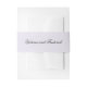 Élégant et classique bande de ventre avec un design simple avec vos noms dans une police de calligraphie en noir sur un arrière - plan de lavande pastel. Ces bandes de ventre élégantes maintiennent votre suite mariage ensemble et ajoutent une touche de finition agréable. Ce design est idéal pour un mariage formel.