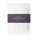 This wedding invitation belly band features a sleek, minimalistic design with a deep purple background and crisp white text. The layout is centered and balanced, showcasing clean, modern typography that emphasizes elegance and simplicity. Perfect for contemporary weddings, the customizable template allows you to easily personalize dates, names, and locations, making it an ideal choice for couples seeking a sophisticated yet understated look. The absence of additional graphics ensures a focus on clarity and legibility, creating a professional and inviting tone for your special day.